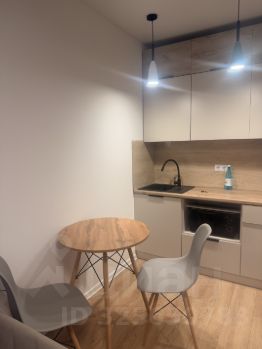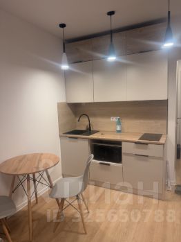 Отличная светлая студия. Полностью готова к проживанию. Есть холодильник, индукционная плита, духовка, микроволновка, кухонная утварь.Предоплата за 1 месяц