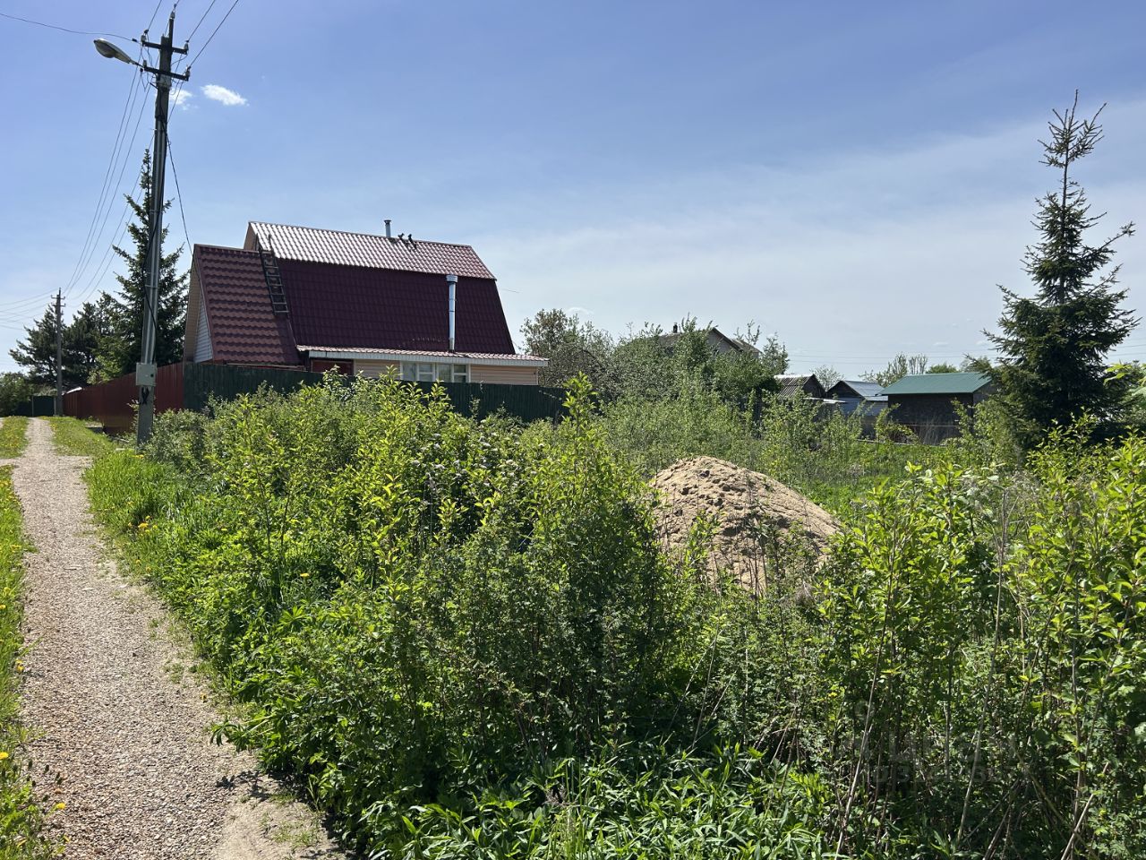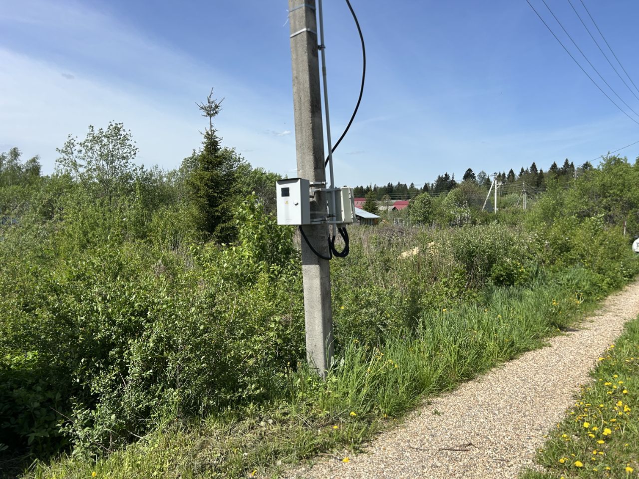 КОММУНИКАЦИИ: Электричество подключено, счетчик на столбе установлен. Водопровод от артезианской скважины (работает в дачный сезон) проходит по границе участка, вода поступает от водонапорной башни. Можно сделать свой кран, врезаться и будет на участке вода. Её используют дачники как для полива участка, так и для питья и приготовления пищи ( по желанию можно сделать свою скважину ).