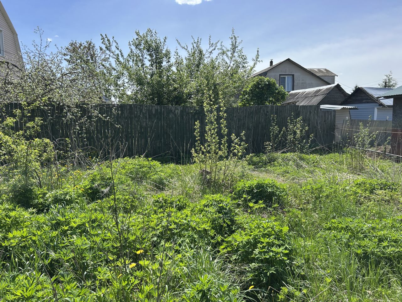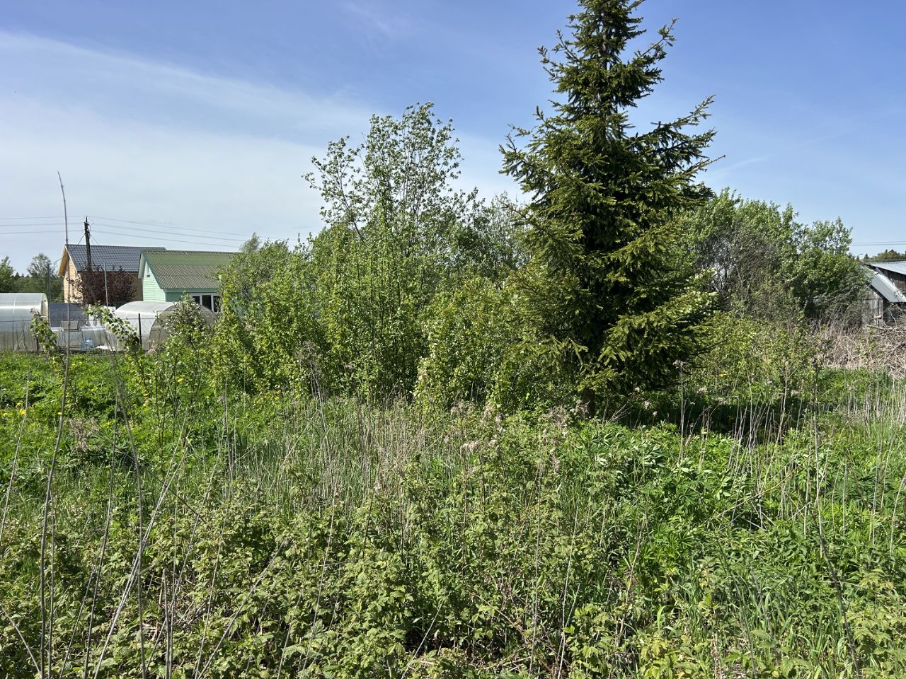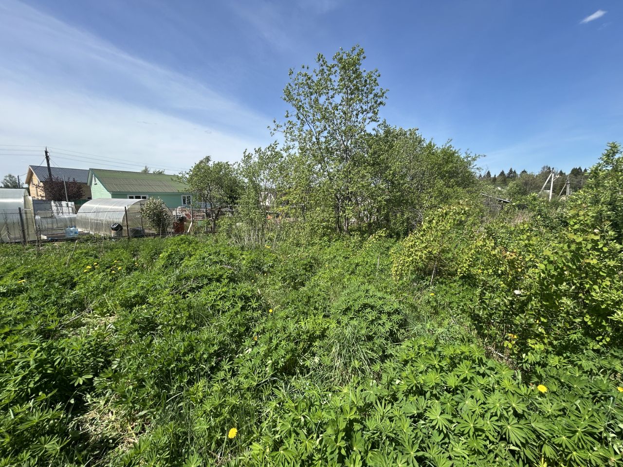 ОБЪЕКТ: Земельный участок 6 соток, прямоугольной формы, ровный, не обработан (не много зарос дикорастущими деревцами, кустарниками, и растет одна елочка), сухой - на возвышенности, данный фактор обеспечивает сухость. Участок огорожен с двух сторон комбинированным соседским забором: сетка-рабица и деревянный. Кадастровый номер 50:05:0120241:1095, отмежеван, границы установлены.