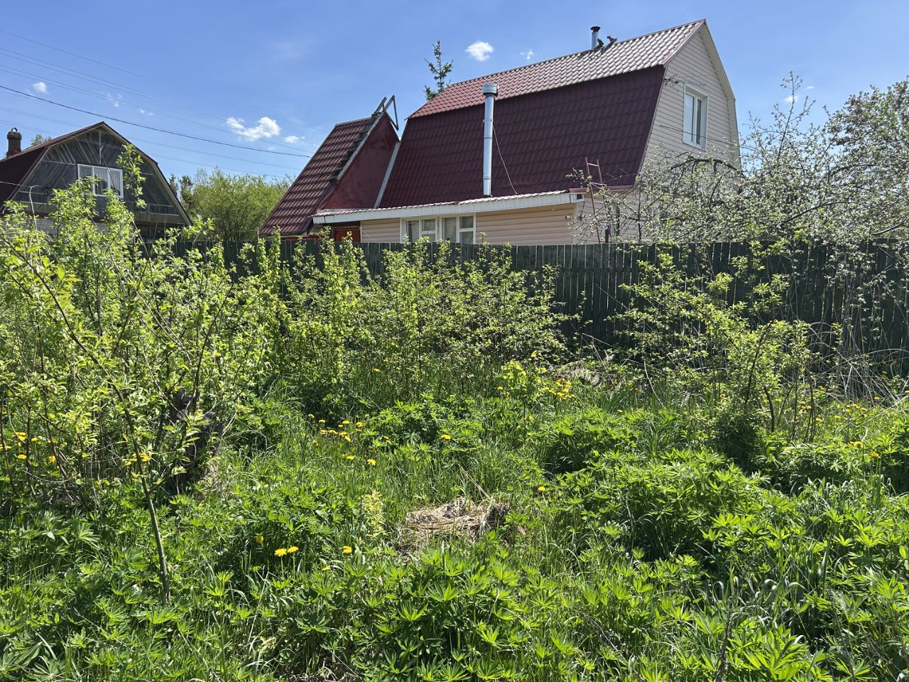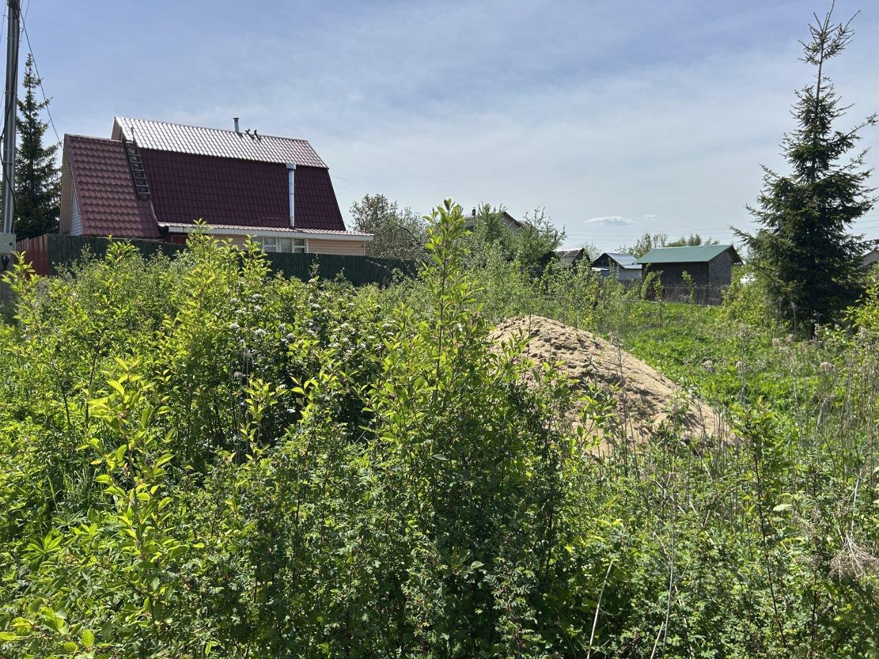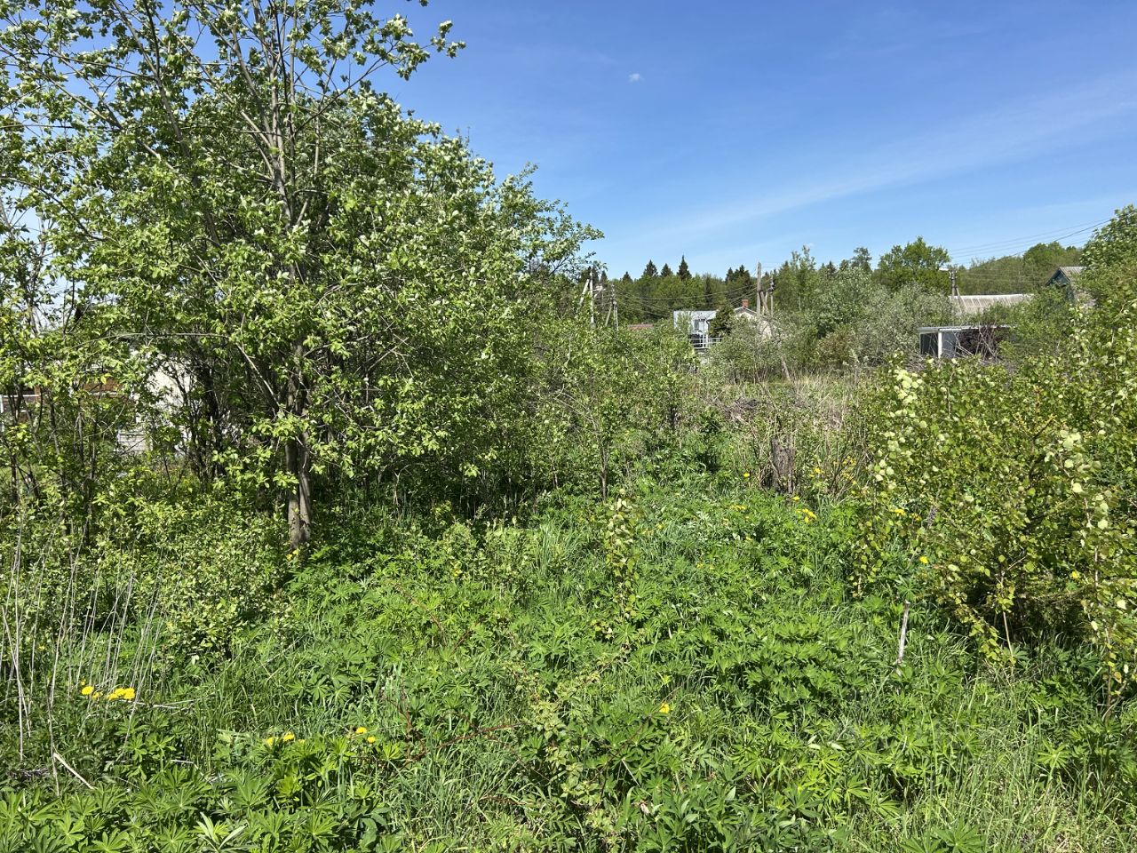 ОБЪЕКТ: Земельный участок 6 соток, прямоугольной формы, ровный, не обработан (не много зарос дикорастущими деревцами, кустарниками, и растет одна елочка), сухой - на возвышенности, данный фактор обеспечивает сухость. Участок огорожен с двух сторон комбинированным соседским забором: сетка-рабица и деревянный. Кадастровый номер 50:05:0120241:1095, отмежеван, границы установлены.