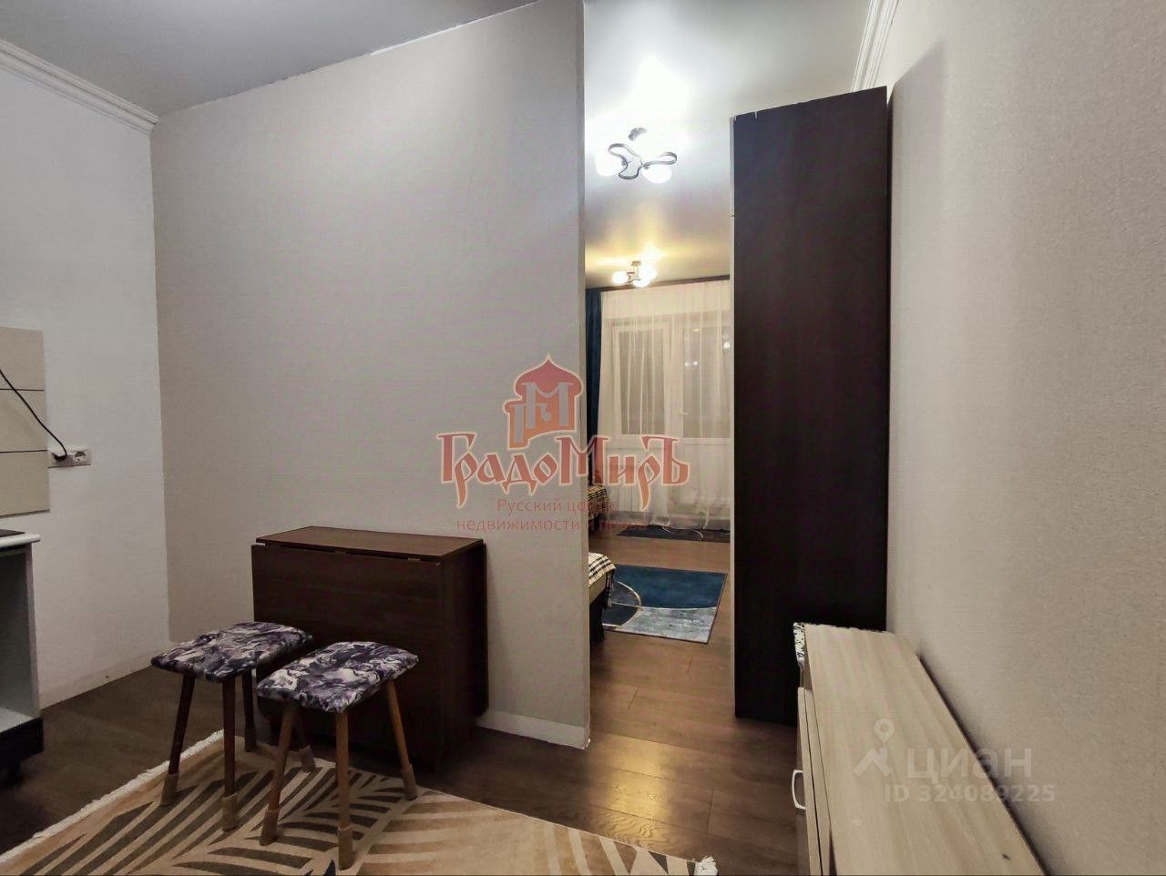 В квартире сделан ремонт. Вся мебель, санузел в отличном состоянии. Пол - плитка в прихожей и санузле. В комнате и на кухне - ламинат. Квартира полностью укомплектована всей необходимой мебелью для комфортного проживания: на кухне установлен кухонный гарнитур со встроенной электрической варочной панелью, есть холодильник, стиральная машина). Раскладной обеденный стол и табуреты.