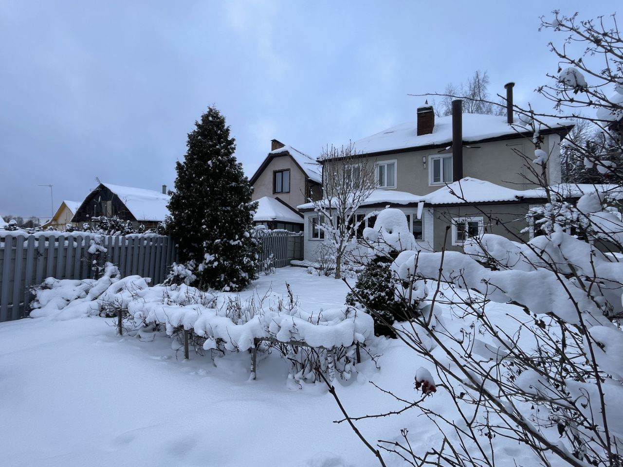 Дом расположен на участке 6 соток, гараж на 2 машины с автоматическими воротами, гостевая парковка, вольер для собаки, курятник.